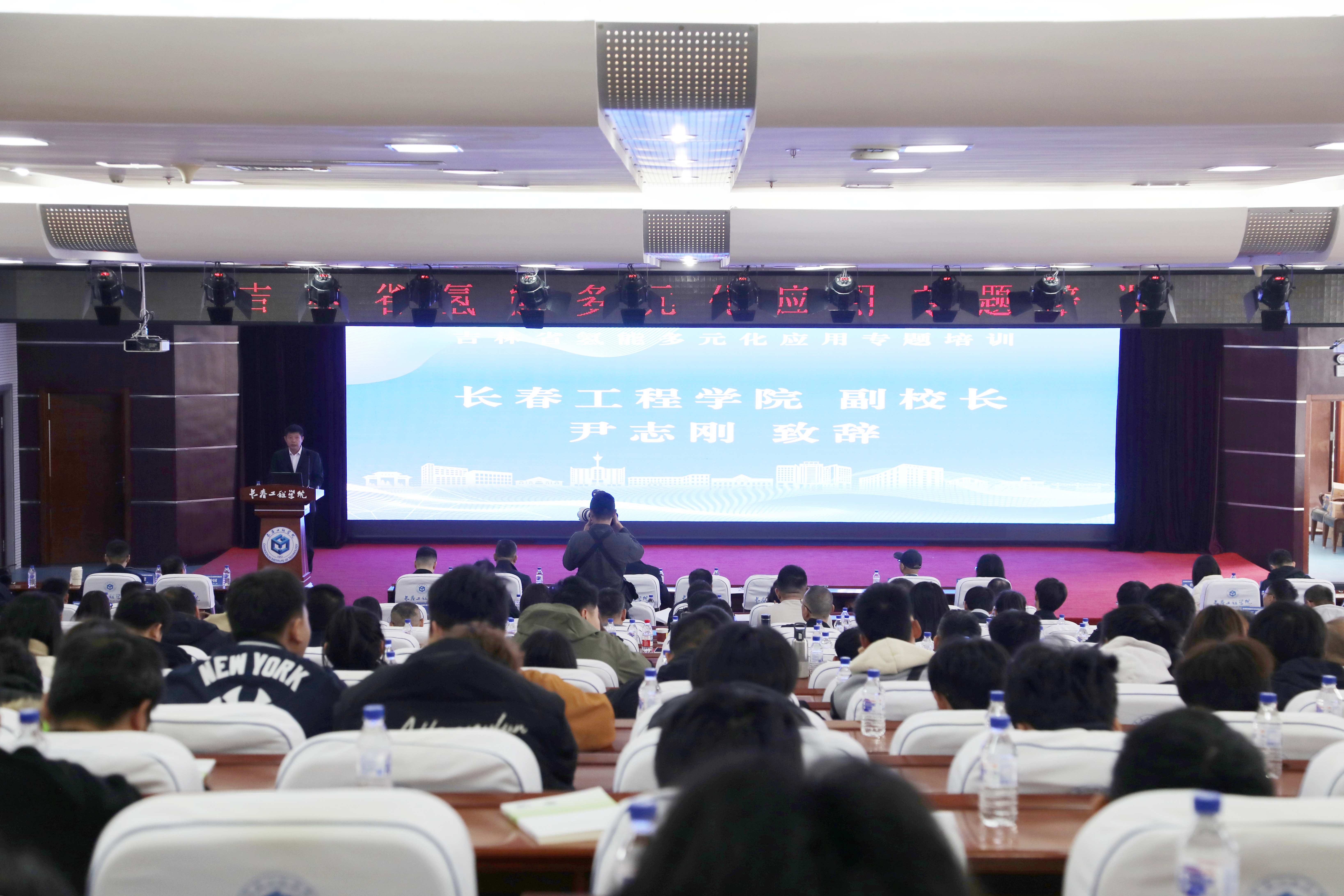 为服务吉林省氢能产业高质量发展目标,培育绿能领域高素质专业人才,10月14日,由吉林省绿色能源产业服务中心主办,我校承办的“吉林省氢能多元化应用专题培训”在第三报告厅拉开帷幕。吉林省能源局副局长刘学锋、李勇,我校副校长尹志刚出席开幕式,省内能源电力企业、高校及科研院所的百余名业界人士参加培训。