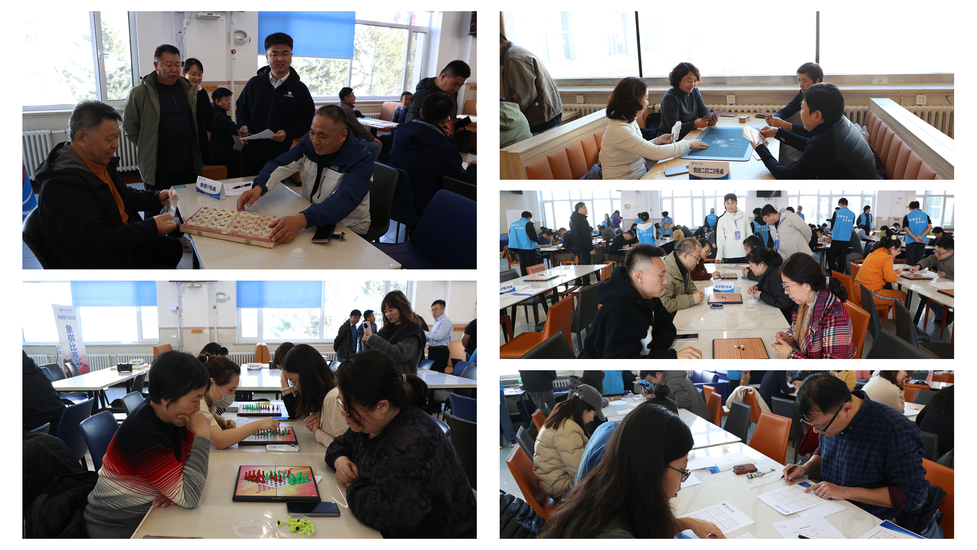比赛现场,教职工们全神贯注,每一场对决都紧张刺激,扣人心弦。经过激烈角逐,文献信息服务中心工会、工商管理学院工会、吉林应急管理学院工会获得数独比赛前三名;机关工会、土木工程学院工会(并列)、勘查与测绘工程学院工会获得象棋比赛前三名;计算机技术与工程学院工会、理学院工会(并列)、电气与信息工程学院工会获得跳棋比赛前三名;后勤工会、机电工程学院工会(含工训中心)、勘查与测绘工程学院工会获得五子棋比赛前三名;建筑学院工会、职业与继续教育学院工会、汽车工程学院工会获得竞技二打二比赛前三名。建筑学院工会、机关工会、后勤工会分别获得团体总分奖前三名。