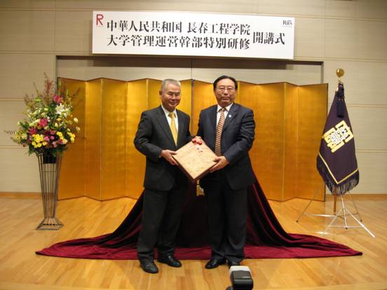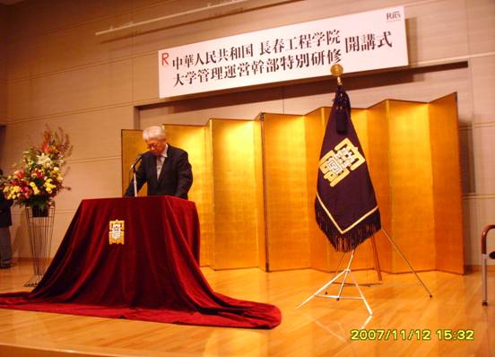 12日上午,研修团全体成员听取了立命馆大学国际机构部有关负责人关于立命馆大学的情况介绍,参观了该学校的图书馆、体育馆、国际协力事业课等设施和有关部门;下午,研修团在立命馆大学创思馆大礼堂举行了开讲仪式,在开讲仪式上,日本国立命馆大学副总长儿岛孝之先生发表了热情洋溢的欢迎词,我校石曙光院长代表学校做了讲话,立命馆大学国际协力事业课课长辅佐武田龙马先生宣读了中国驻大阪总领事馆刘占山同志发来的贺信以及日本国国际协力银行的贺信。