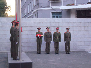 10月22日清晨6点30分,水环学院1662名同学在西校区雕塑广场举行了庄重的升国旗仪式,以“喜庆十七大,争做合格大学生”为本次升旗仪式的主题。在激昂的国歌声中,五星红旗缓缓升起,水环学子排着整齐的队伍,神情庄重,仰望五星红旗,行注目礼,尽显对祖国的热爱之情。