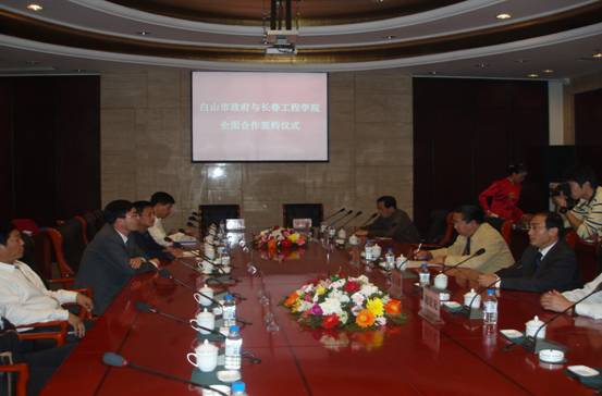 在签字仪式上,石曙光院长介绍了学校的基本情况,阐述了全面合作的意义;刘喜杰市长介绍了白山市的优势产业和发展规划。双方表示将认真履行协议,积极开展全面合作工作。