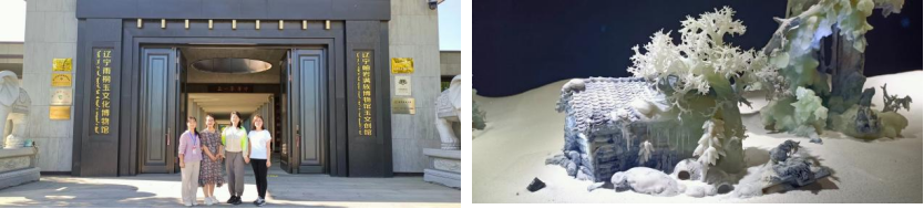 调研团队与鞍山市宝玉石协会江成忠副会长就玉雕人才培养、旅游+原产地玉石的经济模式、岫玉开采与利用进行了深入探讨;在辽宁省岫玉产品监督检验中心,代旭质检师分享了岫岩老玉、花玉、翠玉、河磨玉、岫玉180玉料的玉质特点及鉴定技术诀窍;在直播基地,团队成员深入了解了电商直播流程、现场观摩主播带货直播;在雨桐玉文化博物馆,团队成员参观了馆藏红山玉器,就红山玉器的材质来源进行讨论与分析。