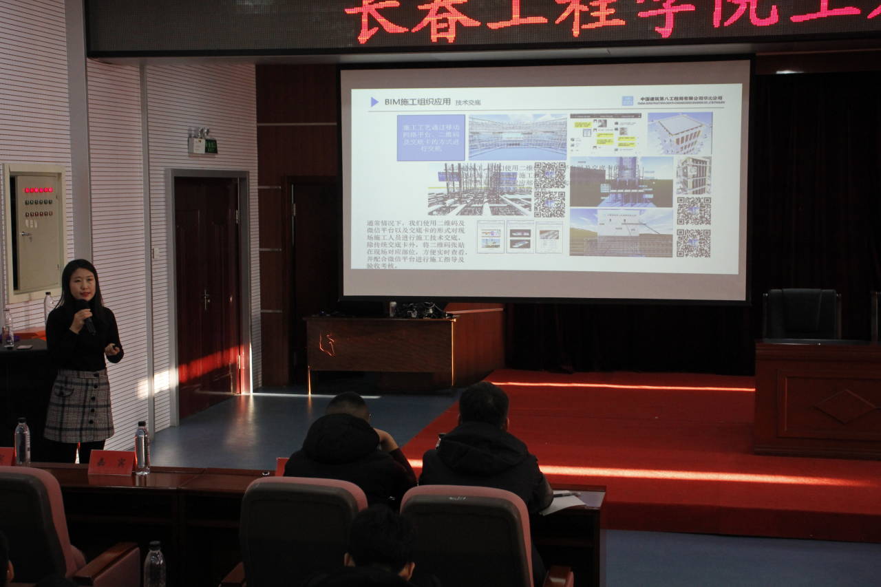 本次活动主要由六场专题报告会组成,分别为中建八局科技部总经理教授级高工亓立刚的《智慧工地建设探索与实践》、中建八局华北公司项目经理刘成的《如何做好一个施工管理者》、中建八局华北公司东北分公司人力经理张超的《职业生涯发展与规划》、中建八局华北公司东北分公司BIM区域负责人杨宁的《BIM应用与交流》、中建八局华北公司东北分公司安全总监祝君的《建筑工程安全工作分享》,以及土木工程学院教授级高工袁长春的《山区大跨钢管混凝土拱桥建造技术》的专题报告。