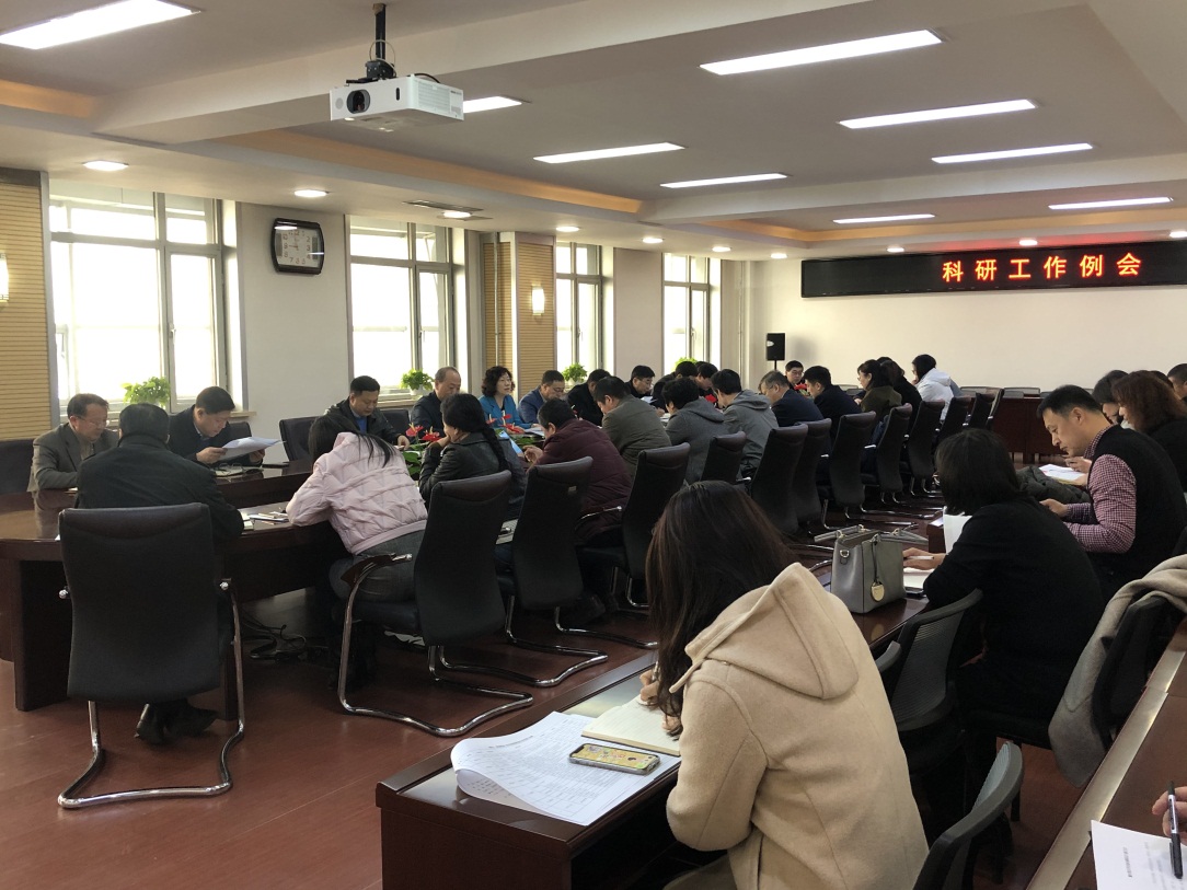 3月23日上午,学校在第七教学楼9楼会议室召开科研工作例会。各学院(部、中心)院长(主任)及科研副院长、科研平台负责人及常务负责人、科学研究处全体人员参加会议。会议由孟祥萍副校长主持。