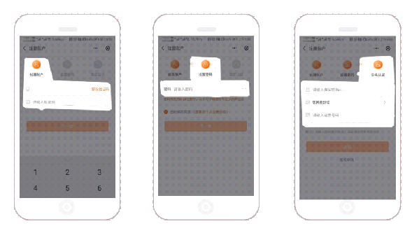 ②完成注册并登录:填写注册手机号码,点击“获取验证码”按钮,在“验证码”一栏填写收到的短信验证码,点击“下一步”进行密码设置及实名验证。填写真实姓名及身份证号码,点击“注册”按钮完成注册并成功登录。